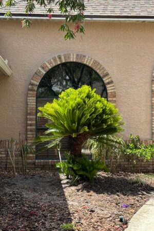 The queen sago, with its palm-like appearance, is a captivating plant that features a short, dark brown trunk and elegant, arching leaves in a lush medium green. These feathery leaves stretch 6 to 8 feet long, creating an enchanting tropical ambiance. Despite its slow growth, the queen sago is cherished for its light texture and ease of care, making it an ideal choice as a lawn specimen or container plant for expansive areas. It shines when placed as a standalone feature where it can be admired from every angle but also thrives when mass-planted on 8 to 19-foot centers in large industrial or commercial landscapes. However, it’s crucial to consider placement carefully; planting too close to buildings or walkways often necessitates the unfortunate removal of some leaves for clearance.