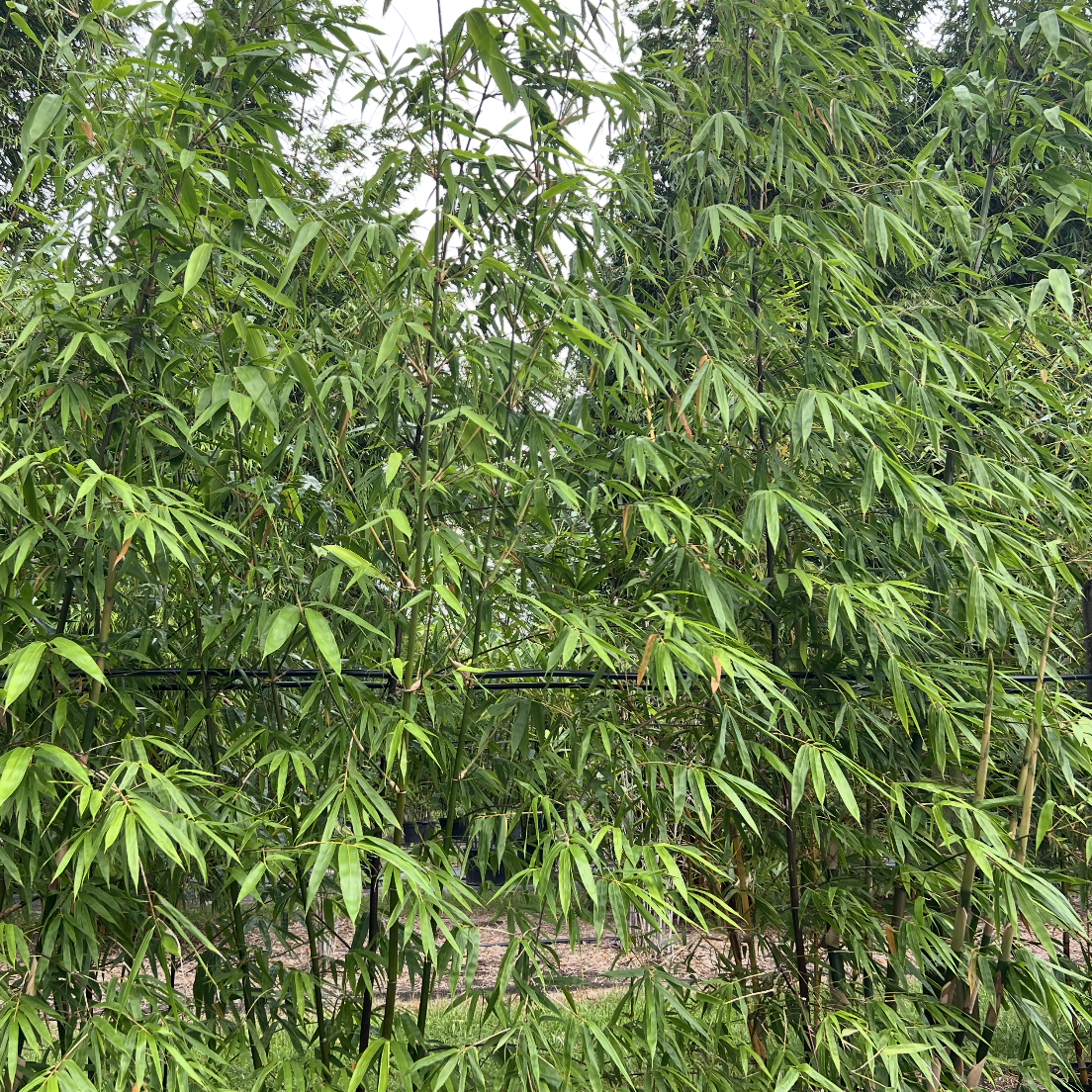 Mature Black Bamboo culms offer a visually striking contrast with their smooth, glossy surfaces in rich chocolate black, accented by vibrant green stripes.