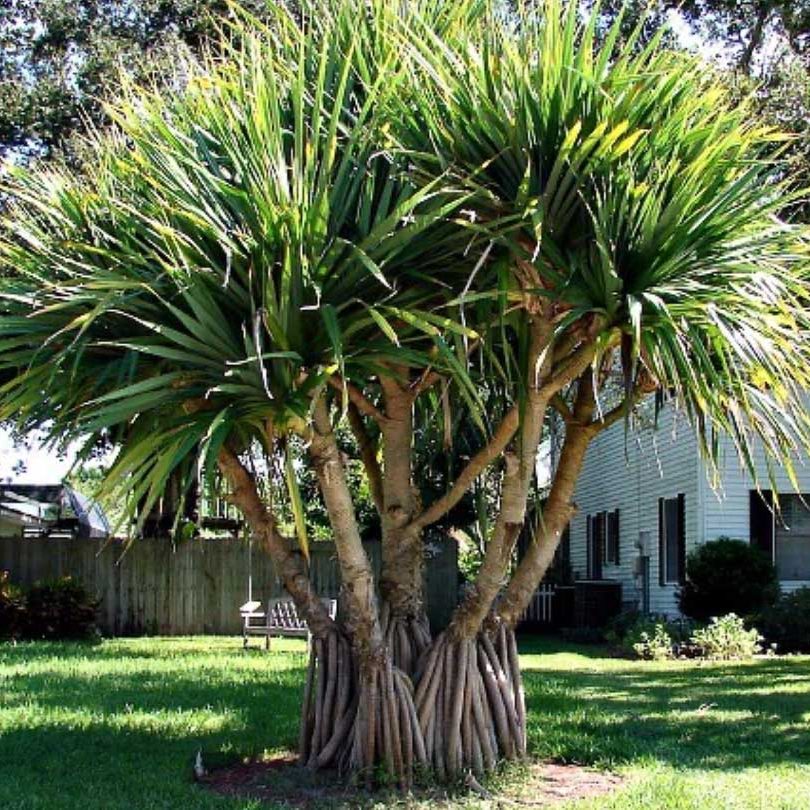 Screw-pine captivates with its striking landscape presence, showcasing a pyramidal, sometimes irregular silhouette that is both open and richly branched.