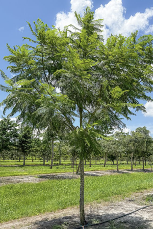 Once the floral display concludes for the season, the tree graces us with fine foliage that creates a serene dappled shade beneath its canopy. As it matures into a rounded crown at around 20 feet tall, this fast-growing wonder reaches up to 40 feet and thrives best under full or partial sun where it can bask gloriously. The Jacaranda Tree truly embodies nature’s artistry at its finest!